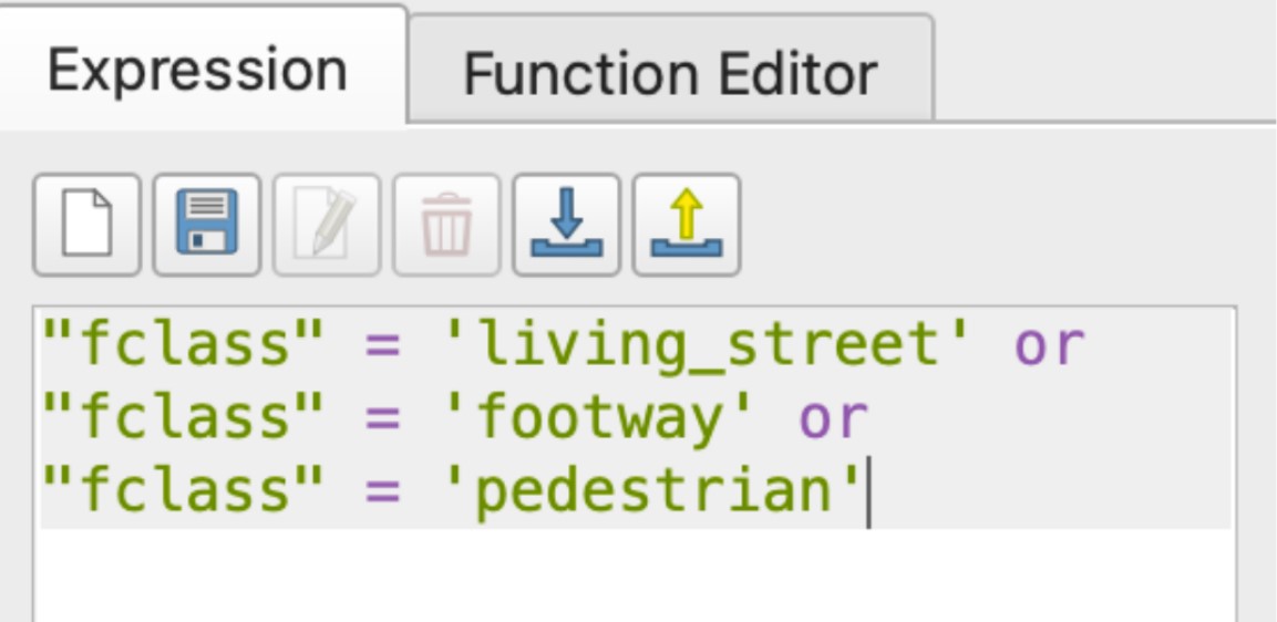 Continue entering the different fclass types into the expression box to extract all the roads for walking paths.