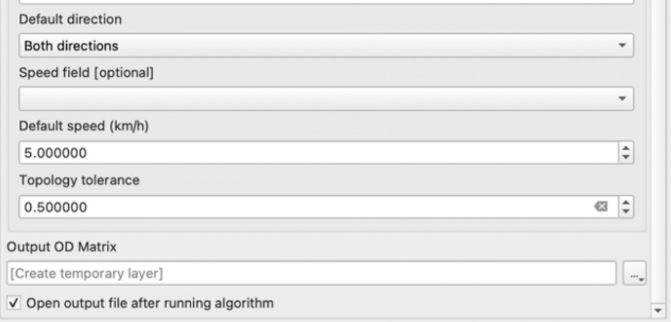 When the process has been completed, save the OD Matrix into the SG GeoPackage as ODmatrix_bef15. You can remove the temporary layer.